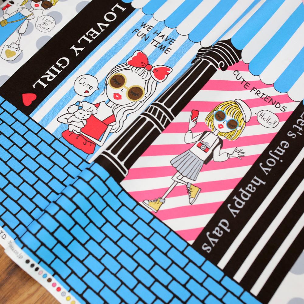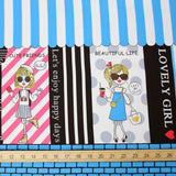 Kokka Kira Kira Girls Panel Border Print - Oxford Canvas - Blue Pink - 50cm