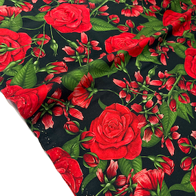Euroknit Roses Cotton Jersey Knit - Black - Half yard