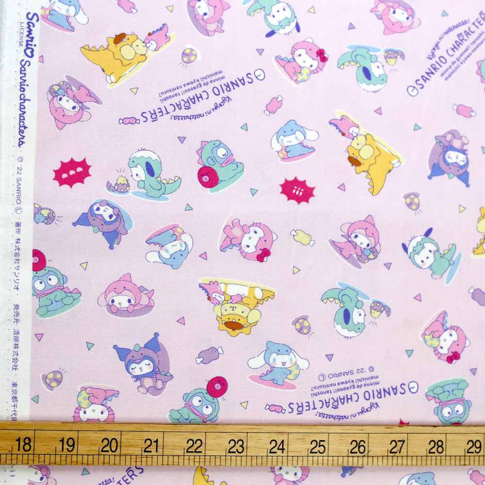 Sanrio Hello Kitty & Friends Dinosaur Oxford Canvas - Pink - Fat Quarter