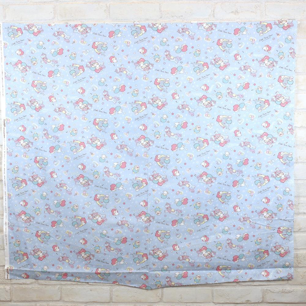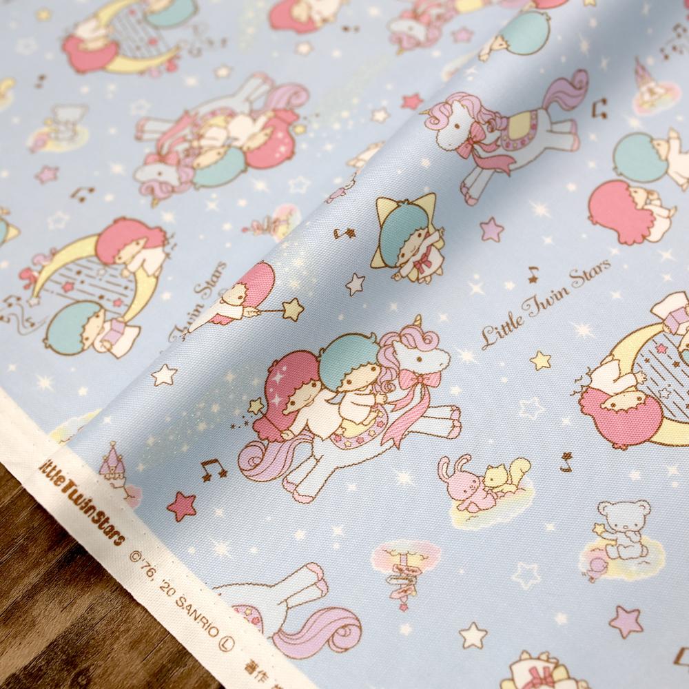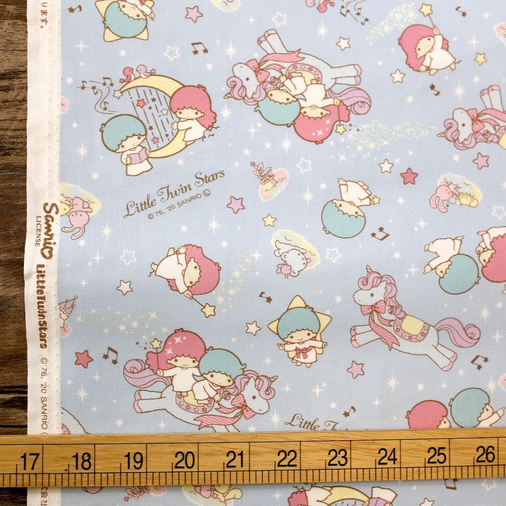 Sanrio Hello Kitty Twin Stars Unicorn Harp Glitter - Cotton Canvas Oxford - Blue - 50cm