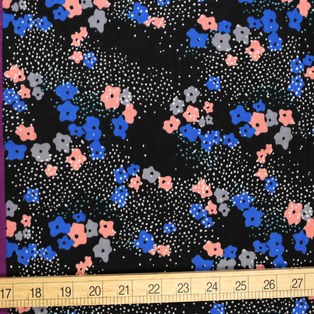(Remnant) Kokka Echino Floret Double Gauze - Black - 1m