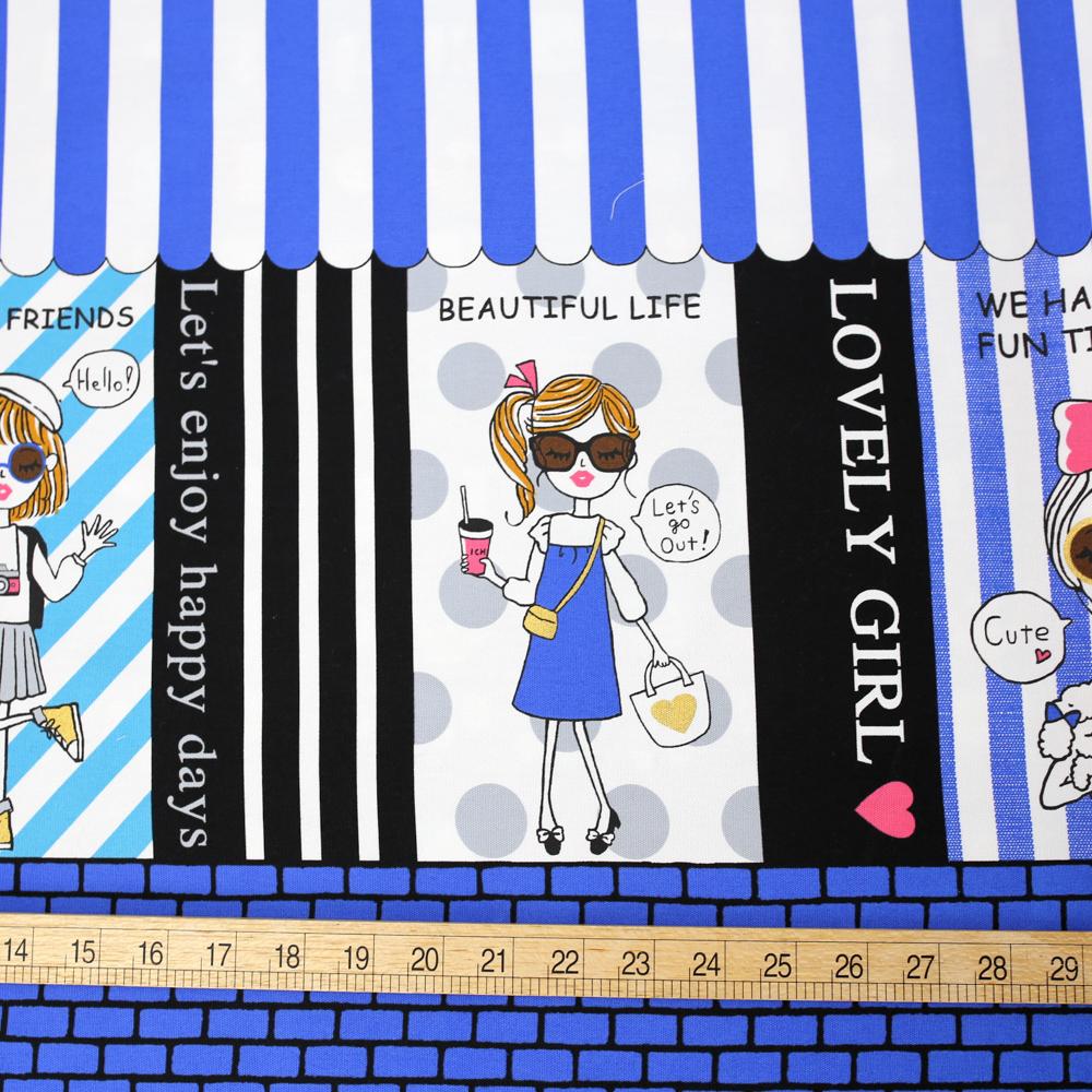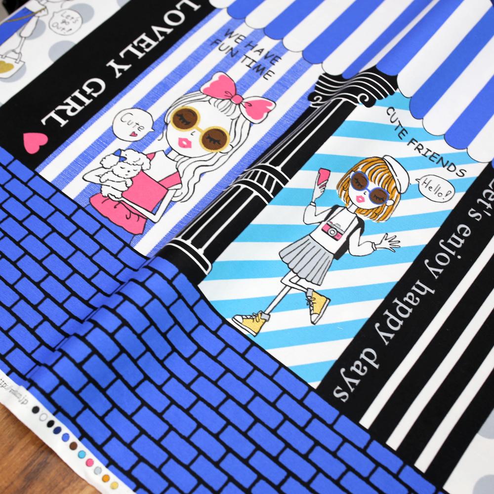 Kokka Kira Kira Girls Panel Border Print - Oxford Canvas - Navy - 50cm