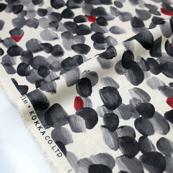 (Remnant) Kokka Modern Art Circles Cotton Linen Sheeting - Black - 1m
